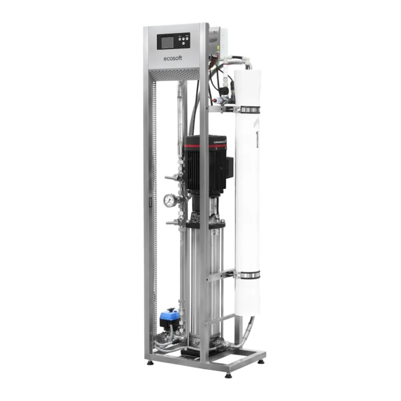 Het systeem is uitgerust met de Ecosoft OC6000-controller, die online toegang en real-time monitoring van de systeemprestaties biedt, waaronder debieten, de kwaliteit van het gezuiverde water en de operationele status. Het compacte ontwerp en de compatibiliteit met een standaard 230 V-voeding maken installatie en integratie eenvoudig, zelfs in omgevingen met beperkte ruimte.